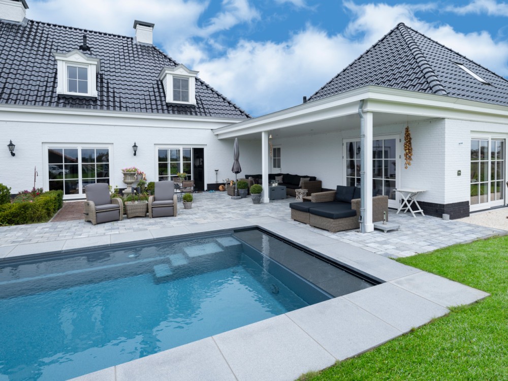 Бассейн доступен в пяти цветовых вариантах, что позволяет идеально интегрировать его в окружающее пространство и подчеркнуть индивидуальность вашего участка.