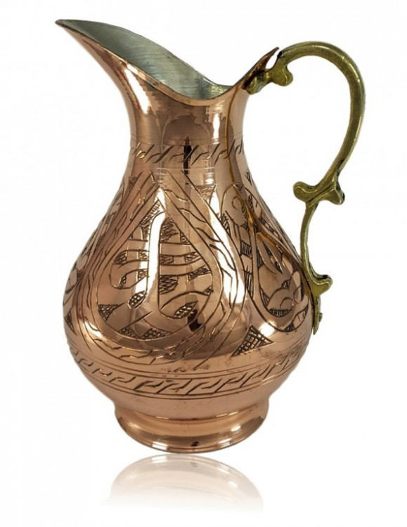 Кувшин для воды с традиционным турецким узором. Материал Медь. Можно не только наливать в него воду или другие жидкости, но и использовать в декоративных целях. Сделано в Турции